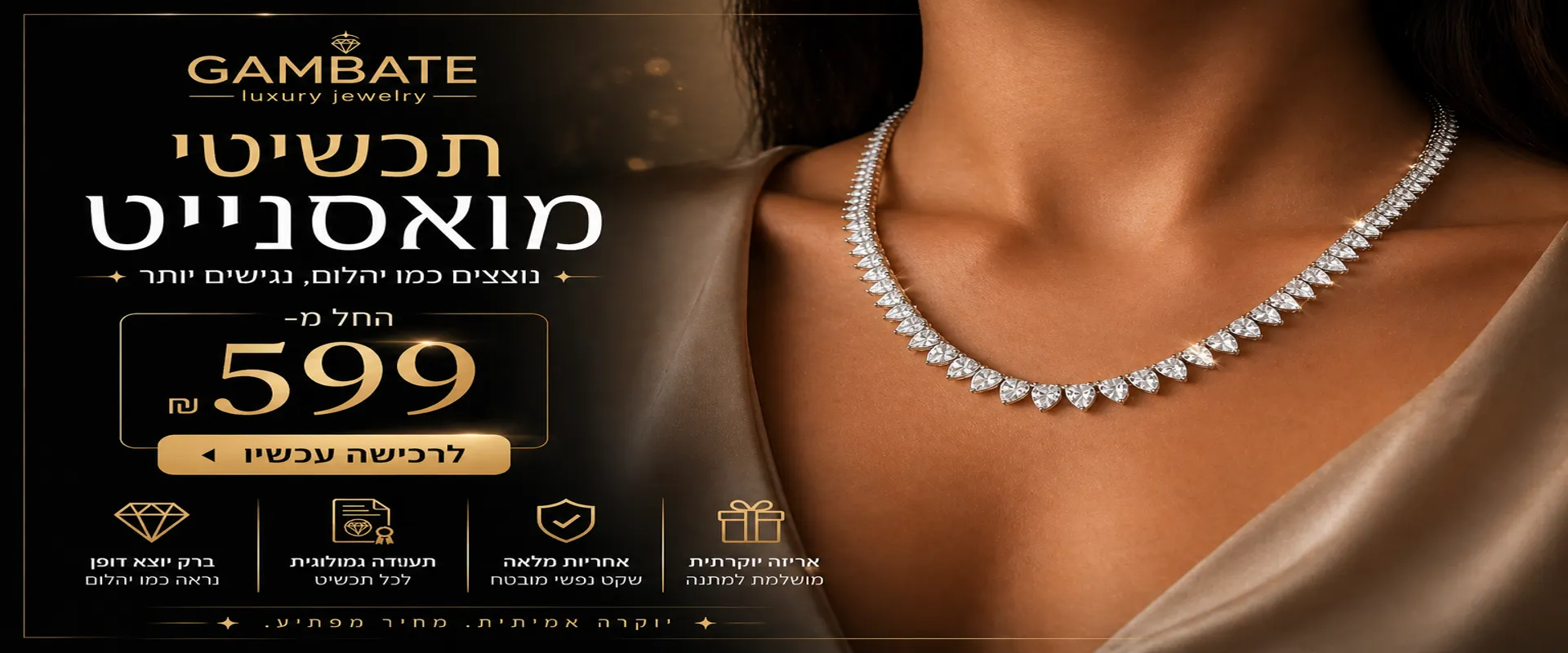 אנחנו כל כך שמחים שאת כאן ומחכים להעניק לך תכשיט שמלא באהבה! כל תכשיט שלנו – בין אם זה יהלום, אבני מעבדה, זהב או כסף – נבחר בקפידה, כדי להביא לך רק את הטוב ביותר. עם מעל 25 שנות ניסיון, אנחנו מבטיחים לך חווית קנייה מעולה, שירות אדיב ומענה מהיר. אנחנו כאן כדי שתיהני מכל רגע – עם חיוך וביחס אישי. קנייה מהנה!