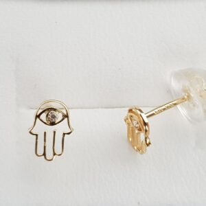 עגיל זהב 14K חמסה בשילוב עין זירקון