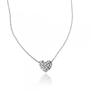שרשרת ותליון זהב לבן/ צהוב – לב קטן משובץ
