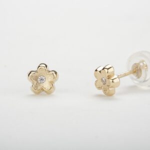 עגילי זהב 14K פרח משובץ
