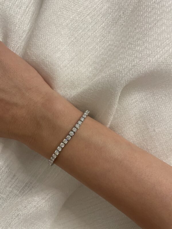 צמיד טניס בעובי 3 מ"מ עשוי מכסף טהור, מצופה בזהב 14K איכותי, ומשובץ בזירקונים באיכות גבוהה. האבנים המשובצות בצורה אחידה ומדויקת מעניקות לצמיד מראה אלגנטי ועדין עם ברק וזוהר מרהיב. הציפוי בזהב 14K לא רק משדר יוקרה, אלא גם מגביר את עמידותו בפני שחיקה וכתמים, ומבטיח מראה מבריק לאורך זמן. הצמיד מגיע באורכים נבחרים של 17, 18, 19 ס"מ. במידה ודרוש אורך מותאם אישית פחות מ-17 ס"מ, ניתן לקצר את הצמיד בהתאמה אישית על ידי שליחת הודעה לווטסאפ שלנו. הצמיד מספק נוכחות עדינה אך מרשימה, שמתאימה לשימוש יומיומי או לאירועים מיוחדים.