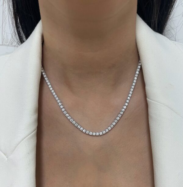 השרשרת משובצת בזירקונים איכותיים לאורך כל אורכה, המעניקים לה ברק עדין ומראה נקי ונוצץ שמאיר את הצוואר בצורה מושלמת.