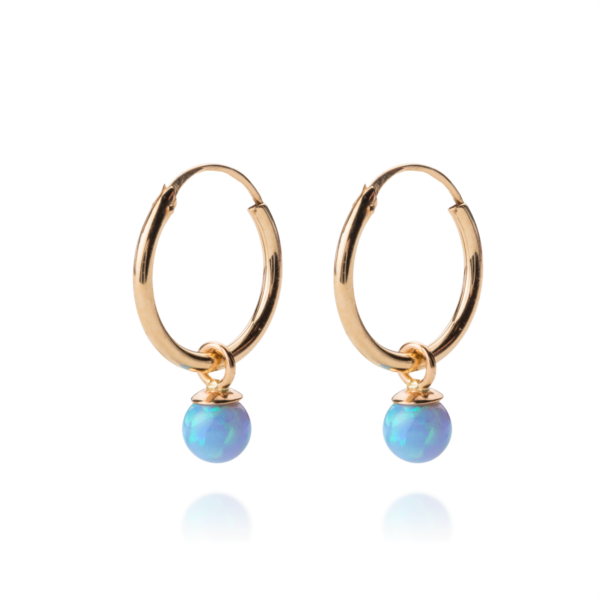 זוג עגילי חישוק זהב צהוב 14K עם תלי אופל 12 מ"מ