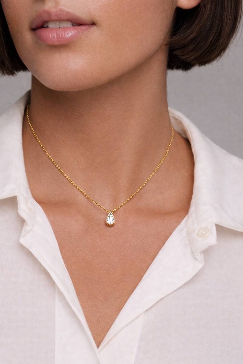 שרשרת קלאסית מבית גמבטה תכשיטים מציעה את השילוב המושלם בין עיצוב אלגנטי לפשטות יוקרתית. תליון השרשרת בצורת טיפה משובץ באבן מוסינייט מרהיבה, הזמינה ב-3 גדלים שונים לבחירה: 1 קראט, 1.5 קראט ו-3 קראט, כל אחד מהם מפיץ זוהר מרשים מכל זווית. התליון עשוי מכסף אמיתי בציפוי זהב 14K איכותי, ומגיע עם אחריות מלאה להבטחת עמידות ויופי לאורך זמן.