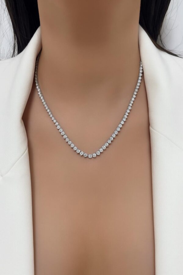 הכירי את שרשרת הטניס המרהיבה שלנו, המשובצת כולה באבני מעבדה מסוג מואסנייט במשקל כולל של 11.20 קראט – ברק עוצמתי, נוכחות יוקרתית ומראה שמאיר כל הופעה.