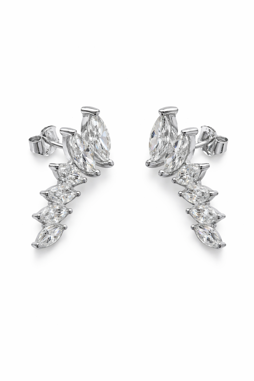 משקל אבנים כולל של 1.8 קראט לעגיל בודד או 3.6 קראט לזוג, בשיבוץ מדויק המדגיש את צורת האבנים ויוצר מראה עשיר, זוהר ומלא נוכחות.