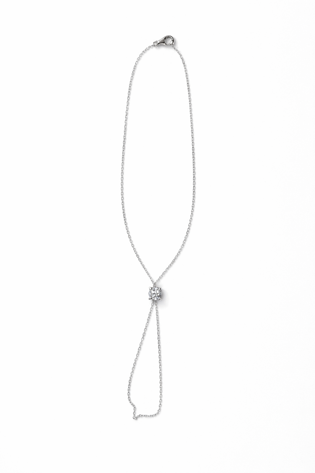אבן מרכזית במשקל 1 קראט, משובצת בעדינות במרכז החיבור בין הצמיד לטבעת, ליצירת מראה זוהר, נשי ובלתי מתפשר.